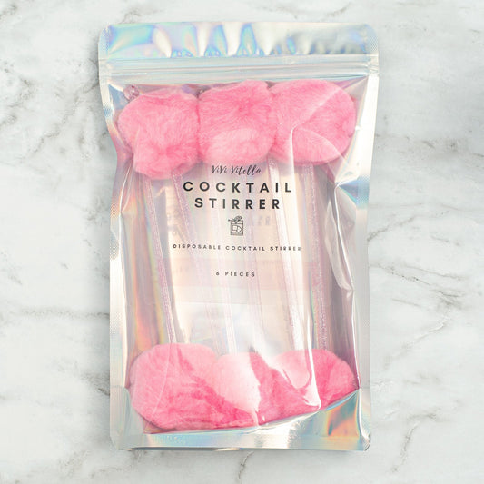 Pink Pom Cocktail Stirrer, Set of 6