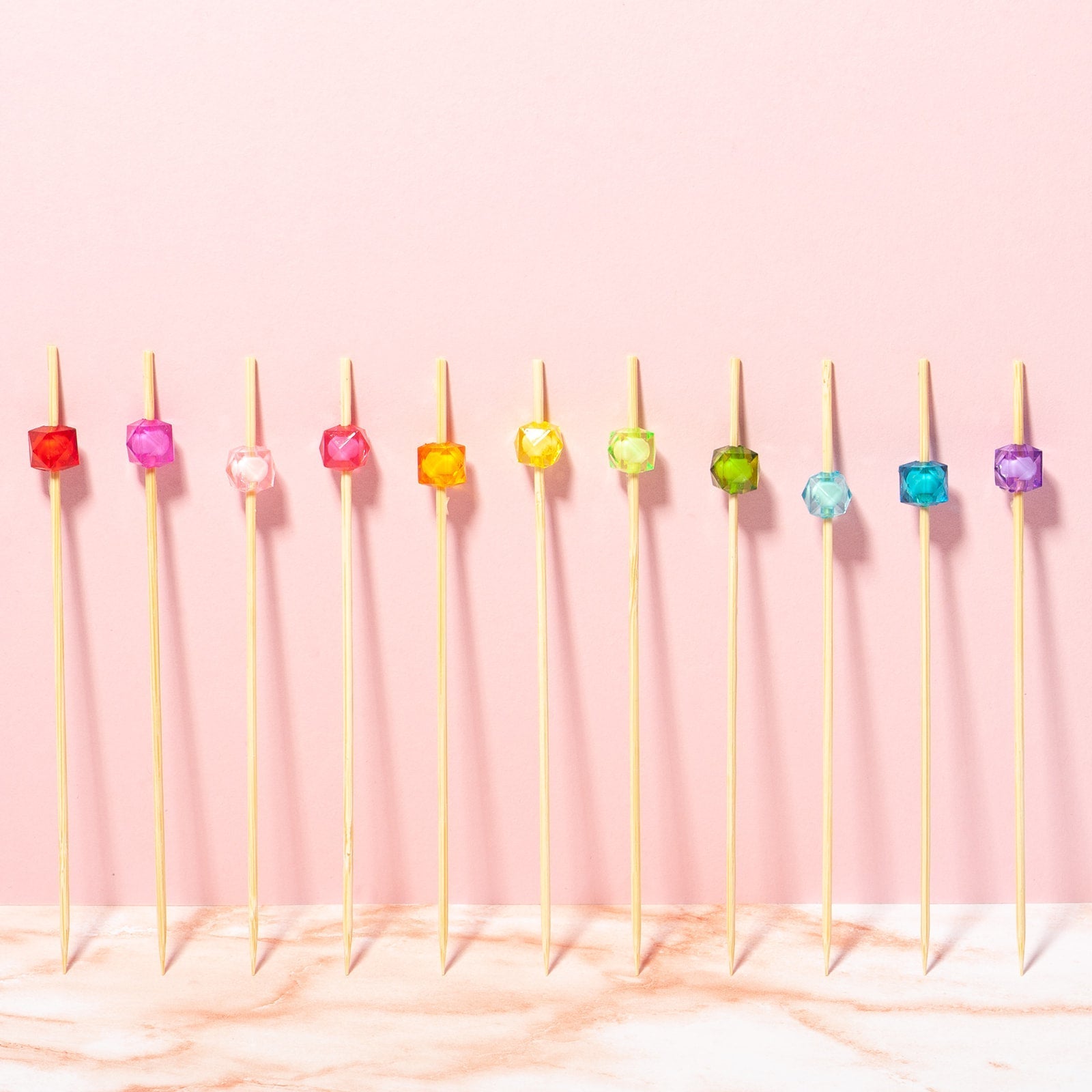 Add glitz and glamour to any brunch or dinner party with these cocktail picks! Fun and colorful, this trio of picks is a great way to garnish any cocktail, wine, or champagne.